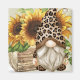 Um gnomo adorável numa impressão de leopardo juntou alguns girassóis.