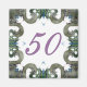 Um design arabesco em verde, azul e roxo no estilo de azulejos azulejo espanhóis.
