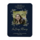 Letra à Mão Chic Florido Azul Marinho Ímã de Memória de Casamento.