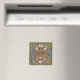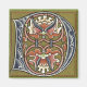 Esta letra maiúscula "D" é feita ao estilo muito ornamentado. A primeira não é apenas uma letra simples e maiúscula. Parece que o próprio "D" foi cortado, descascado e esculpido. No centro da letra há um design floral com coração. Há duas dessas designs - uma de cabeça para baixo em cima da outra. Um fundo verde dispara todas as cores na design do monograma.