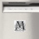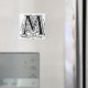 A letra preta é esboçada em branco e apoiada por espirais e tendrils.