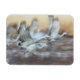 Um bando de gruas Sandhill se preparando para deixar batendo suas asas enquanto se preparam para a partida para o pôr do sol beijado no Bosque Del Apache Novo México. Foto de Bryan Keil.