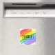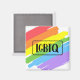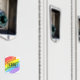 Este trabalho de arte apresenta um arco-íris colorido com as letras LGBTQ.
