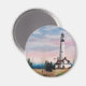 De uma pintura acrílica original de Brenda Thour of Wind Point Light, localizada em Racine, Wisconsin, com um pôr do sol rosa e azul. Copyright de Brenda Thour 2004.