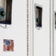 Menina de fantasia tradicional sueca está em degraus em frente à porta. Vintage fine art (1912), do pintor sueco Carl Larsson.