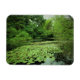 Uma bela área natural no Parque Estadual do Rio Molalla, em Canby, Oregon. Lave árvores e arbustos verdes no Primavera, com as almofadas de lírio borrifadas no lago refletor escuro.