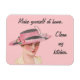 Este ímã divertido mostra uma imagem antiga de uma mulher num chapéu de rico. O texto personalizável diz, "Faça-se em casa. Limpe a minha cozinha." O texto e a cor de fundo podem ser personalizados para ajustado das suas necessidades.