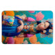Uma imagem de uma linda garota segurando uma bolsa e um cachecol.
