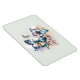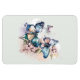 Um ímã flexível com trio de borboletas fluindo entre algumas flores bonito. Esquema de cor rosa azul e verde.
