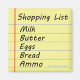 Querida, estamos fora de... Esta engraçada lista de compras de imãs de geladeira te lembrará de pegar o essencial — leite, manteiga, ovos, pão e munição!
