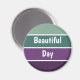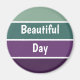 Um padrão horizontal verde e roxo listrado e o texto: Belo Dia. Você pode clicar em personalizar e editar o texto. Escreva duas palavras em uma linha.