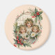 Three adorable little angels, with sheet music behind them, and a holly wreath around them, make a darling and vintage-looking design on this magnet for Christmas. Would make a darling stocking stuffer!