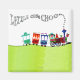 Artista: Audrey Walters | Unidades de comboio estilizadas sobre colinas verdes, fumaça soletra "Little Choo Choo"