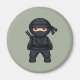 Adorable chubby yet fearsome looking little ninja is dressed in black outfit and carrying katana - traditional Japanese sword.