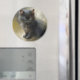 Adicione algum charme à sua geladeira ou a qualquer outra superfície magnética quando usar este imã de gatinho doce! Esta pintura apresenta um adorável gatinho preto com pelo macio e liso. Ela se senta numa pose serena, como se calculasse seu próximo passo. Seus olhos verdes brilham com curiosidade enquanto ela estuda seus arredores. O fundo da pintura é uma cinza macia e muda misturada com amarelo/verde, o que ajuda a enfatizar sua casaco escura. O efeito geral é de inocência, brincadeira, e charme, fazer-o um doce acréscimo a qualquer sala.