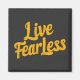 Ce design inspirant présente une typographie audacieuse et fluide avec les mots “Live Fearless” en lettres majuscules. Les couleurs sont un dégradé de jaune doré à un jaune plus clair, évoquant la chaleur, l’optimisme et le courage. Le style de la police est moderne et dynamique, avec des courbes douces qui donnent une impression de mouvement et d’énergie positive. Ce design capte l’essence de la motivation avec son message puissant qui encourage à vivre pleinement sans être entravé par la peur.