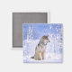 Íman Lobo-Madeira sentado na neve, Canis lupus,