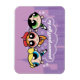 As Raparigas Powerpuff | Flor, Bolhas e ButterCup numa nuvem roxa com as "puffgirl" escritas abaixo.