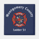 Na moda design para bombeiros, bombeiros e suas famílias, apresenta o logotipo do departamento de bombeiros genérico vermelho em fundo azul escuro. Personalizar com detalhes do departamento da cidade ou do condado ou nome de bombeiro em fonte branca moderna