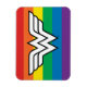 Pride DC | Logótipo icônico da Mulher Maravilha com camadas de cores arco-íris dentro.
