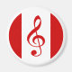 Este ímã redondo estiva o logotipo oficial do artista de gravação, Scott Ruhs. O design baseia-se na bandeira canadense com um fundo branco e bares verticais de vermelho nos lados esquerdo e direito de um emblema circular. Neste logotipo design, a folha vermelha de bordo que normalmente se encontra na bandeira canadiana foi substituída por uma clave vermelha de mesa.