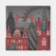 London Elevations by Night Red por Fab Funky. Apresenta marcas famosas de Londres à noite num esquema de cores vermelho e cinza.