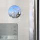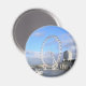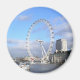 A British Airways London Eye, fotografada pela Westminster Bridge. O antigo County Hall está ao fundo e um barco fluvial se aproxima do píer