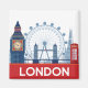 Magneta de Londres que representa Big Ben, London Eye, Tower Bridge e o Shard,