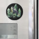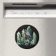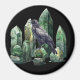 Diseño de cuervo negro posado sobre monolitos verdes, inspirada en la sabiduría nórdica y la magia celta.
