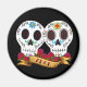 Feliz e apaixonado, esses crânios de açúcar descansam em uma faixa que diz "Amor". Eles colocarão uma mala no seu rosto o ano todo, e a cor de fundo é personalizável!