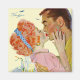 Artista: Bernard D'Andrea | Senhora de cabelos vermelhos beijando o homem atrás dos girassóis com uma cadeira azul e um gato.