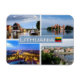 Aqui você encontrará o souvenir das suas férias. Esta categoria contém imãs de geladeira de vários locais. Esta imagem contém uma representação dos seguintes locais: Lituânia Lietuva Latvia - Klaipeda - Castelo de Trakai Island - Vilnius. Imprima amigos e família com lembranças únicas da grande viagem! Tente!