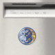 Lua adorável e estrelas com nuvens enroladas desenhadas com efeito de vidro manchado em azul e ouro.
