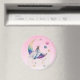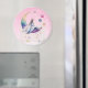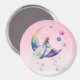bela fada sentada numa lua crescente com fundo rosa-claro galáxico