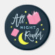 Mostre-se do lado da sua estante com este íman de livro com as palavras "All Night Reader" cercado por lua amarela e estrelas e livros cor-de-rosa contra um fundo azul escuro. *Observe que a Marca d'água do Zazzle que aparece na visualização de zoom NÃO aparecerá no produto impresso final. © Bookish e Maravilha