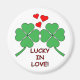 Sorte no amor. Desenhos de trevas de quatro folhas com formas cardíacas flutuando sobre elas.