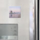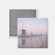 Foto-ímã de Souvenir de uma paisagem de conto de fadas com moinhos de vento velhos à luz pastel macia de um nascer do sol de inverno com gelo no rio e geada nas sementes numa manhã fria em Kinderdyke, Países Baixos.