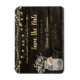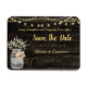 Belo design para salvar o anúncio de data. Mason Jar sobre um fundo de madeira rústico com luzes penduradas.