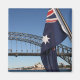 The Sydney Harbor, Harbor Bridge, Sydney Opera House e a bandeira australiana.