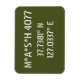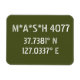 Coordenadas do mapa de latitude e longitude para o ficcional hospital ficcional de campo M*A*S*H* 4077, que foi alegadamente perto da cidade de Uijeongbu, Coreia do Sul. Fonte branca no estilo de lápis no fundo verde do Exército.