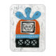 Um design de capricho apresenta uma face estilizada de macaco incluída num quadrado, rodeada por blocos negros de cor e abstrato. O fundo consiste em brancos e cinzentos texturizados, melhorando a composição lúdica.