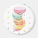 Ilustração de uma torre delicadamente equilibrada de macarões cor-de-rosa, verdes, laranja, castanho e amarelo. Uma especialidade francesa e um cartão ou presente delicioso para um amigo especial ou qualquer pessoa que ame coisas doces.