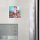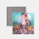 Elegante, colorido, elegante e design único em cores brancas brilhantes, vermelhas, cor-de-rosa, azuis. Bonita personagem loira sofisticada, tecidos brilhantes de uma fantasia barroca com rosa vermelha. Pintor aquoso original e acrílico com folha de ouro e cores iridescentes na canvas