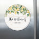 Apresentando nosso ímã de madeira branca de limão amarelo monograma. Apresentando a ilustração da cor da água da fruta de limão de Verão com fundo branco de pranchas. Adequado para amantes da natureza.