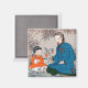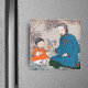 Esta linda imagem da safra tem uma mãe asiática e seu doce bebê sentados no chão compartilhando flores laranja bonito. Eles estão vestidos de roupas tradicionais que são azuis e laranja. O fundo é blues e bronzeado. Veja minha loja Art by MAR para combinar produtos com este design.