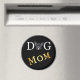 Um design gráfico divertido para Mães de Cachorro que adoram Cachorros Franceses. O texto DOG com uma foto de um francês substituindo o O e o MOM abaixo em uma fonte dourada e brilhante.
