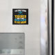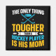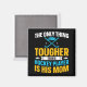 O imã do tema do hóquei para a mãe de hóquei com paus de hóquei e paus com texto de branco, amarelo e azul que lê A única coisa mais forte que um jogador de hóquei é sua mãe!