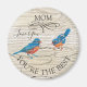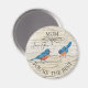 Estes pássaros azuis cantando mandam uma mensagem para a mãe que você a ama. O texto no imã diz "Mãe, Ame-te, És o Melhor", que pode ser personalizado para a tua própria mensagem. Notas musicais e cobertura de textura de madeira dão-lhe uma aparência rústica de país. presente de excelente para Dia de as mães. Projetado pelo famoso artista mundial Tim Coffey.