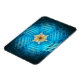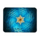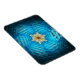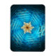Uma estrela fractal de tom azul e amarelo de David em um fundo escuro. Adicione seu próprio texto.