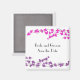 A magenta elegante e a cor púrpura florescem em galhos delicados. Um fundo de branco acentua os nomes da noiva e do noivo e a data do casamento. Personalizar conforme desejado.
